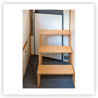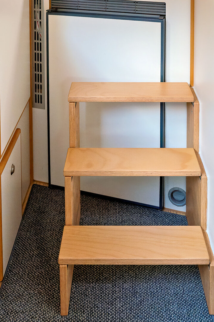 Unsere Einstiegshilfe wird bei uns individuell auf Wunschmaß gefertigt und besteht aus hochwertigem Buchenholz -Multiplexplatte-. Das Besondere ist nicht nur die Stabilität, sondern auch das platzsparenden schöne Design das sich sehr leicht in jedes Wohnmobil integrieren lässt.